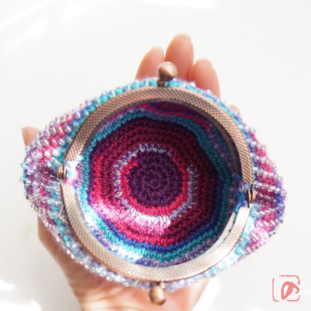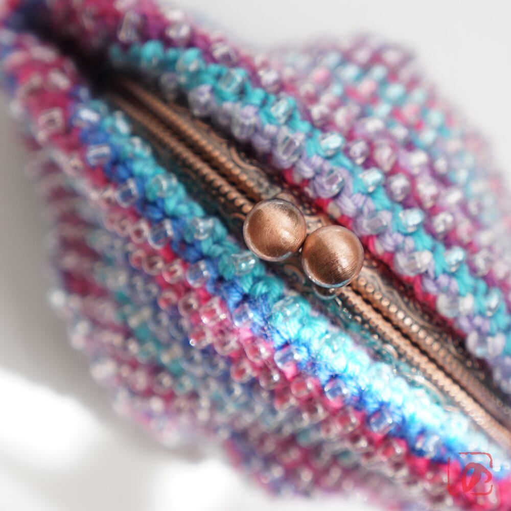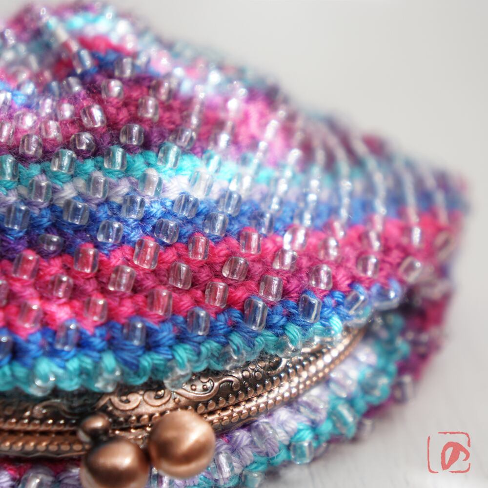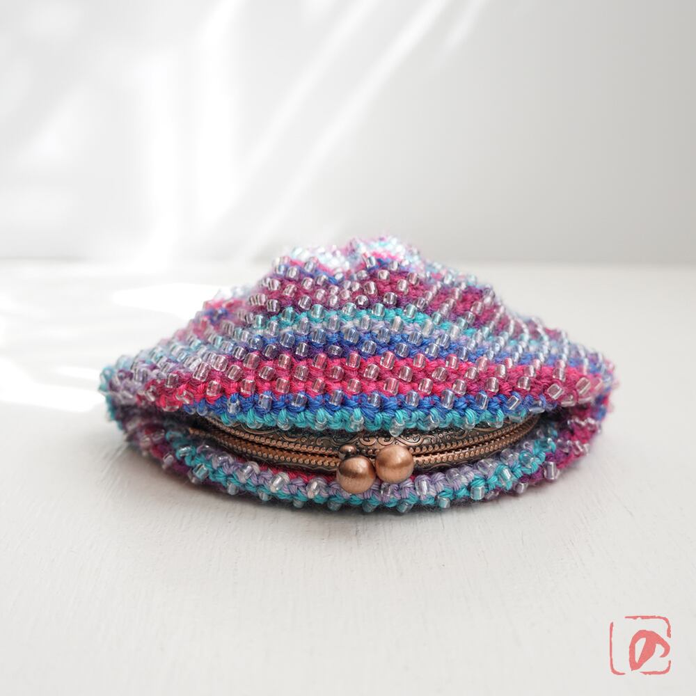 編みがま口×ビーズがま口のハイブリットつぶつぶビーズがま口です。