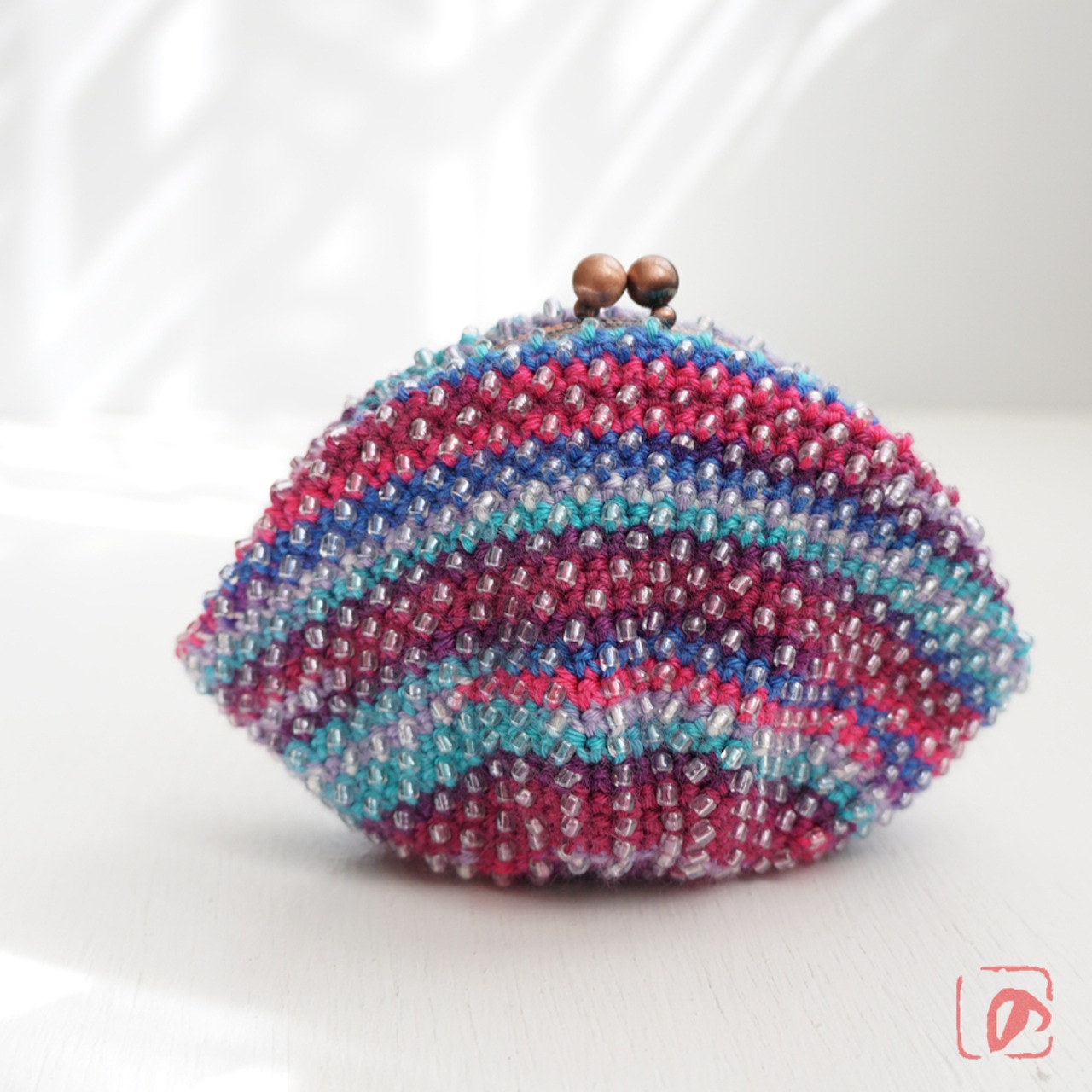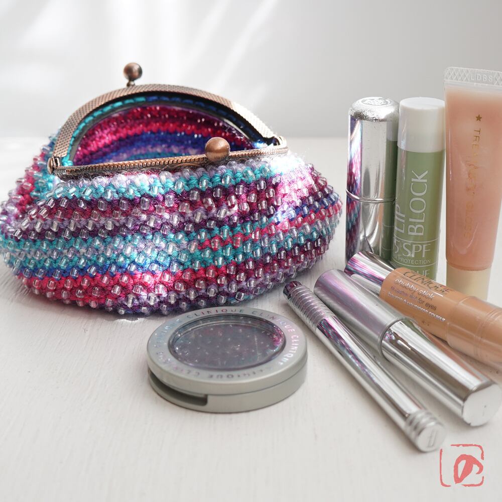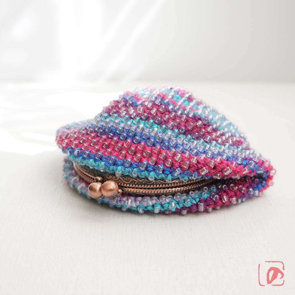 一目飛ばしにビーズを編み込んだ、つぶつぶ感がカワイイがま口。