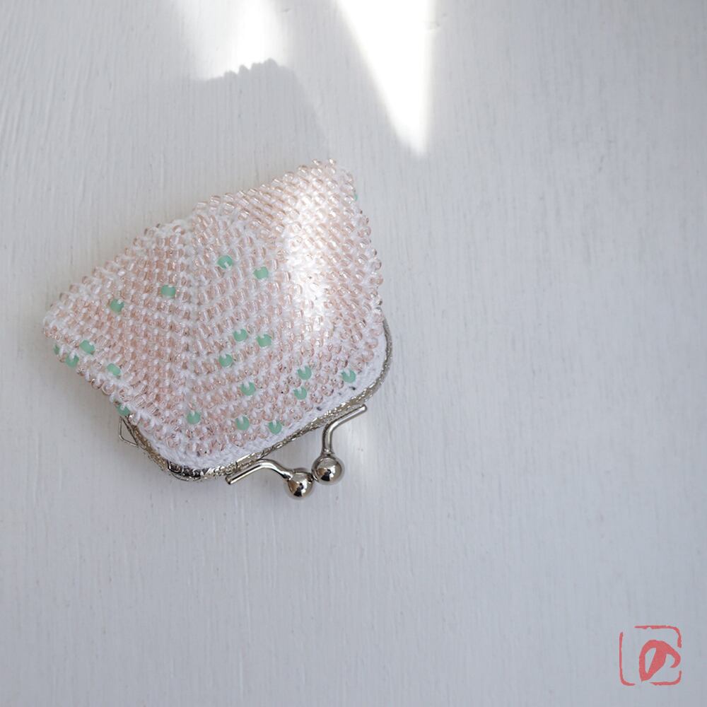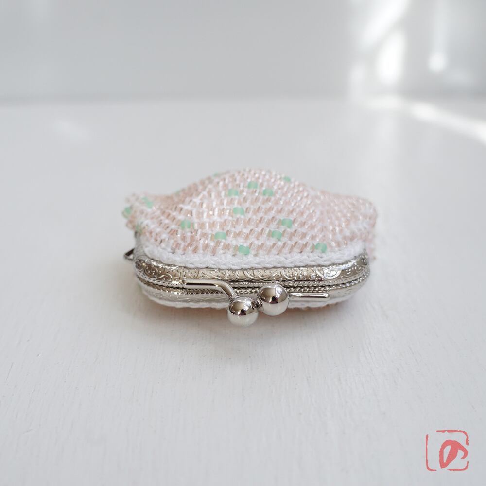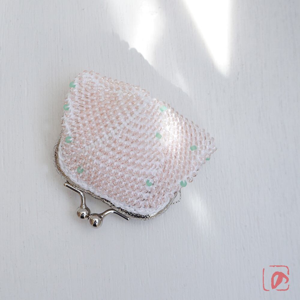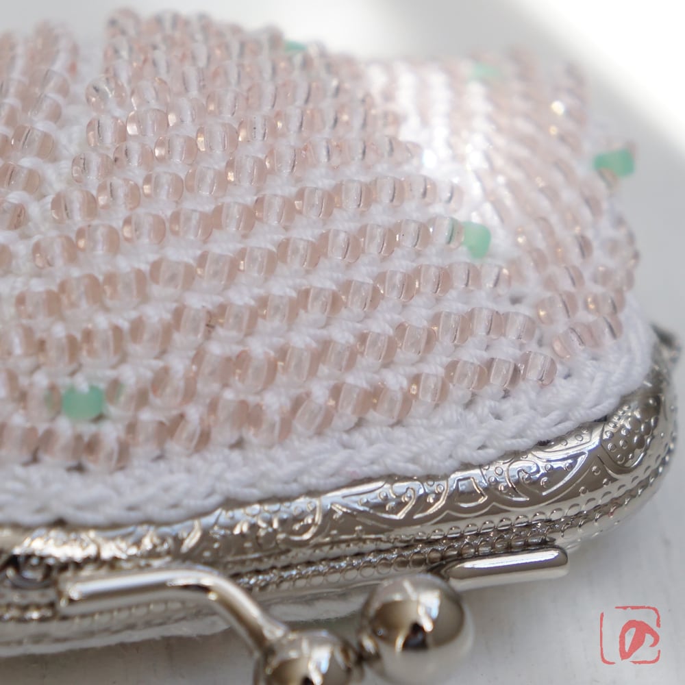 3mmのガラスビーズをひとつぶづつ編み込んだがま口です。
