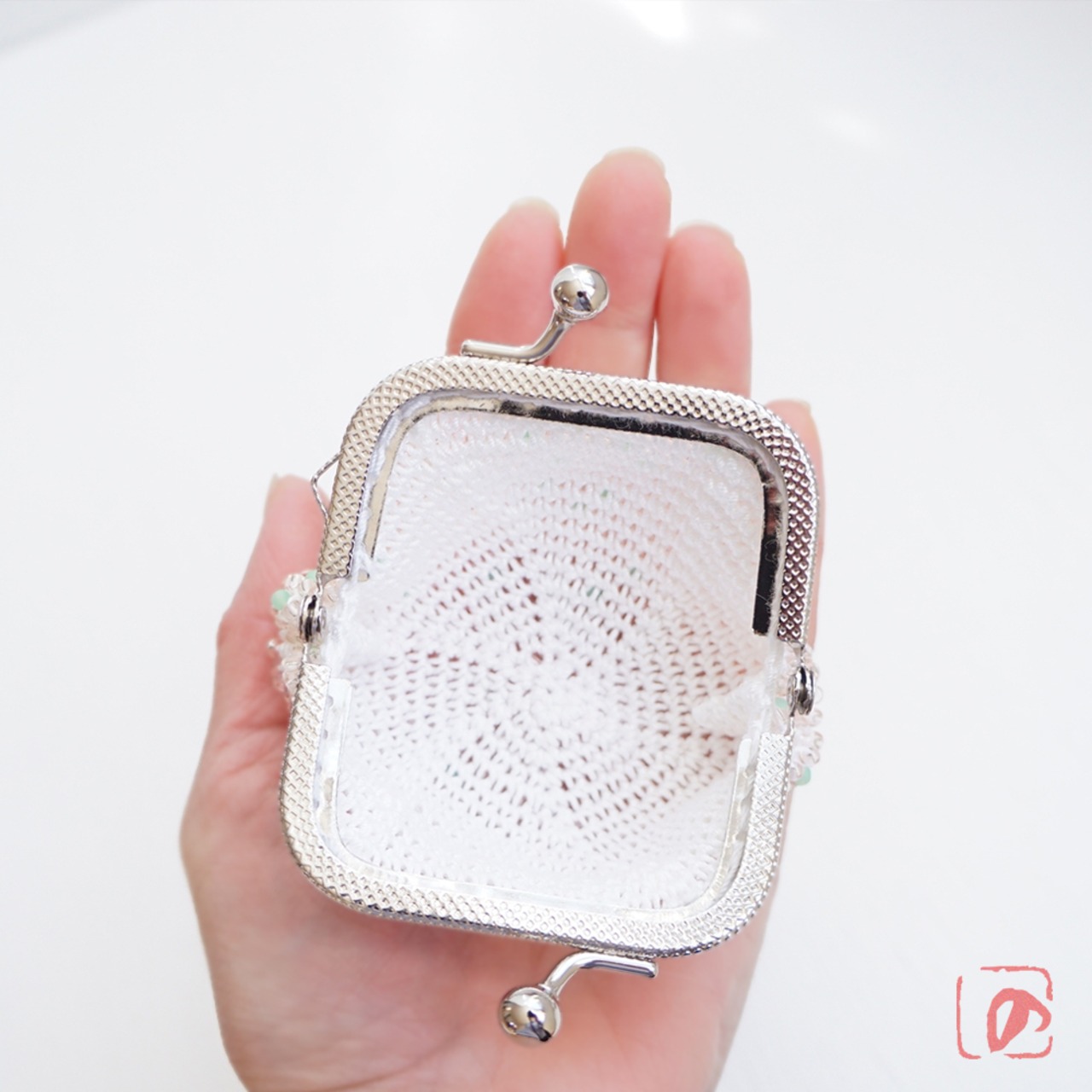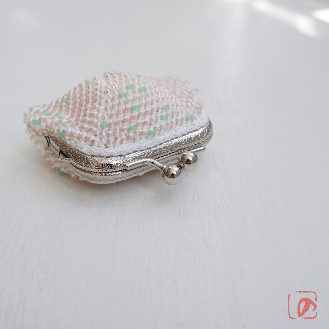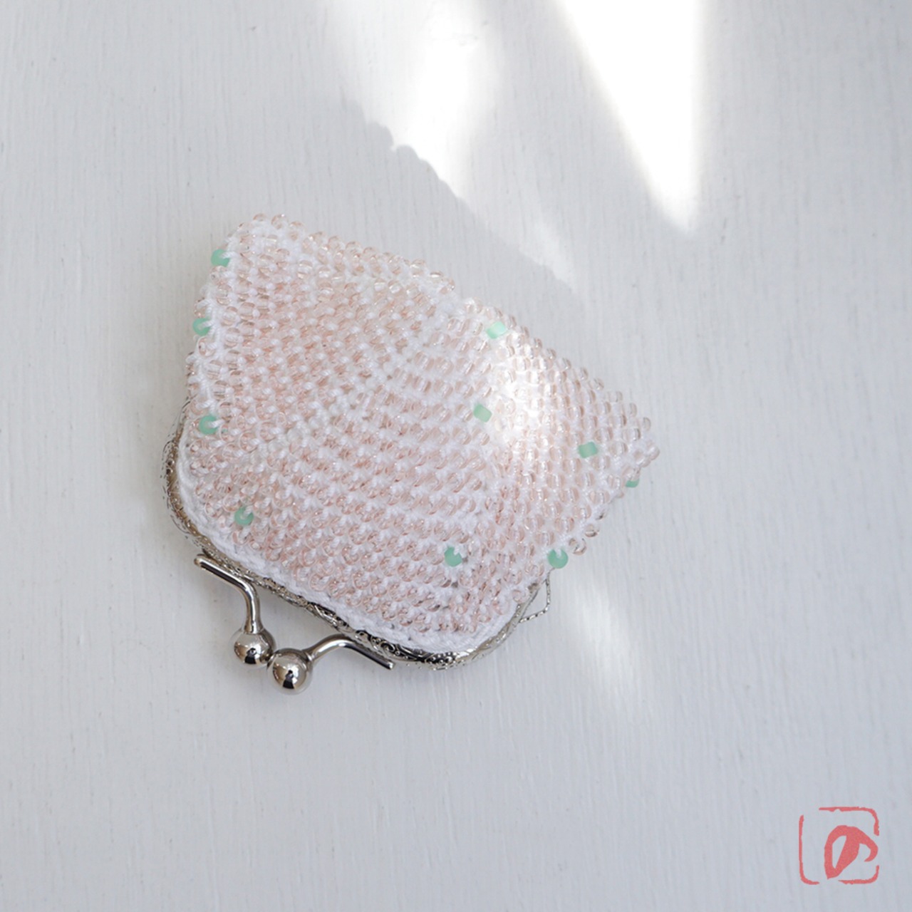 3mmのガラスビーズをひとつぶづつ編み込んだがま口です。