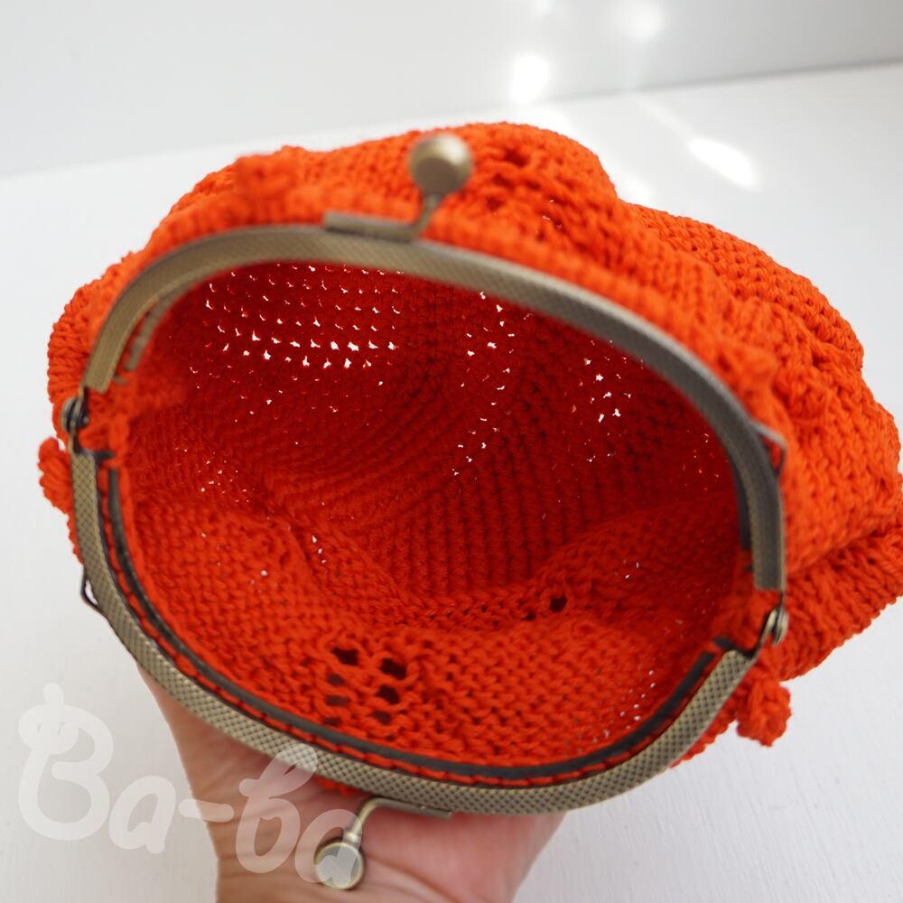 ばあば作、さらに大きめ・透かし編みのたっぷりがま口(rouge orange・C1717)