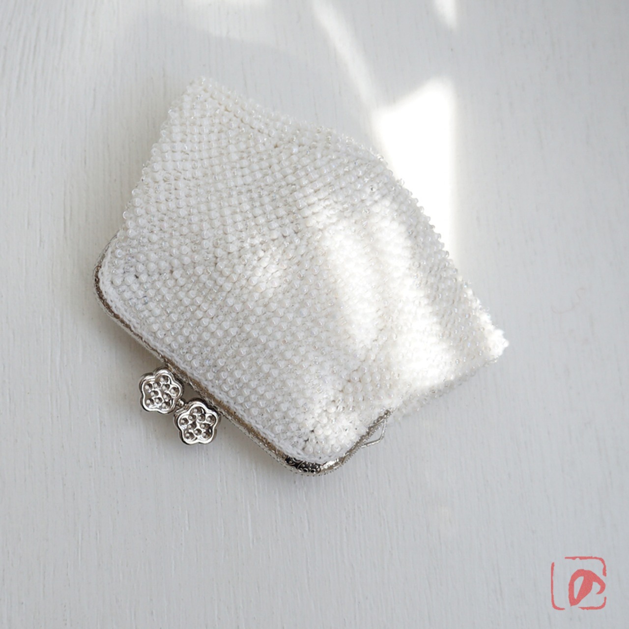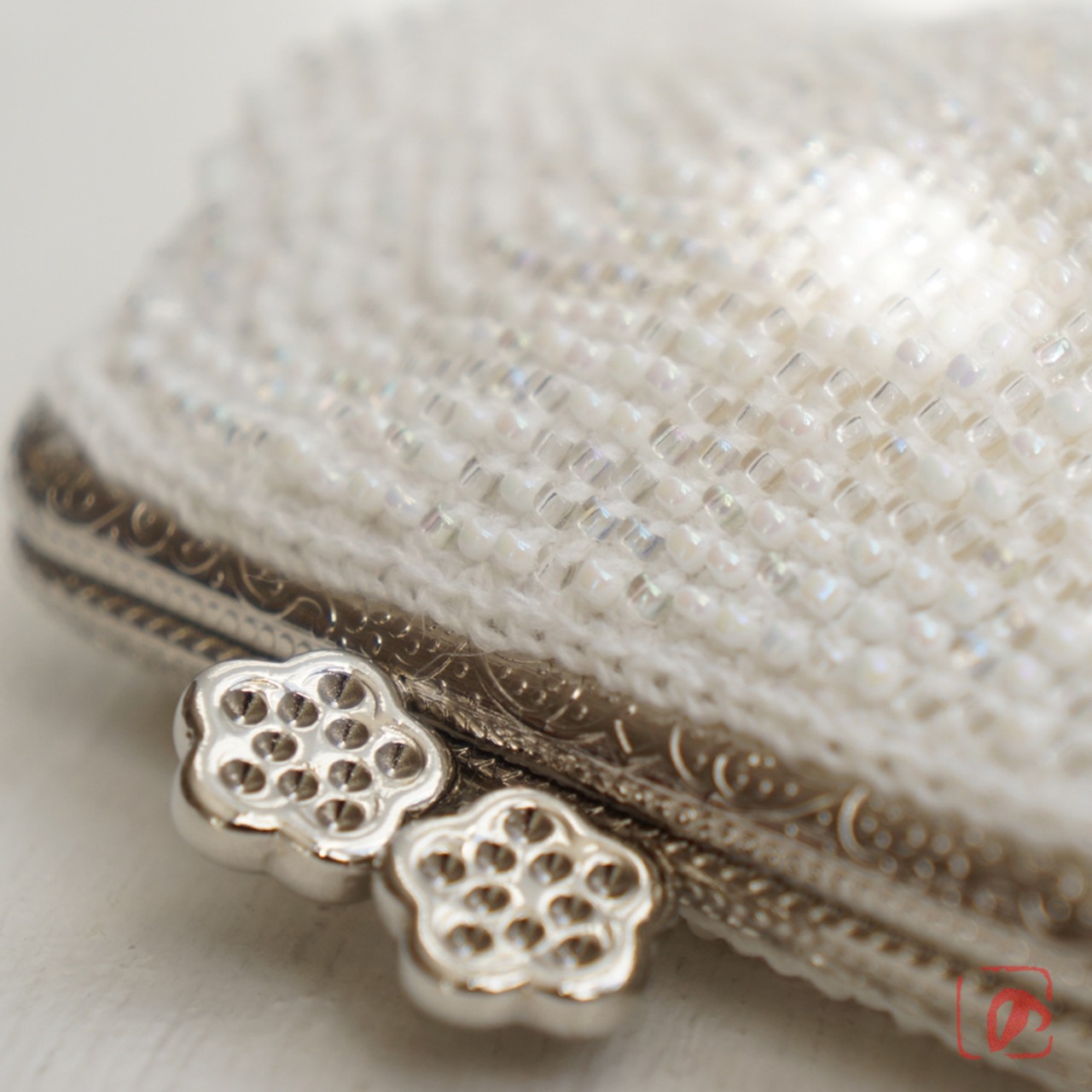2mmの日本製シードビーズをひとつぶづつ全面に編み込んだ上質ながま口です。