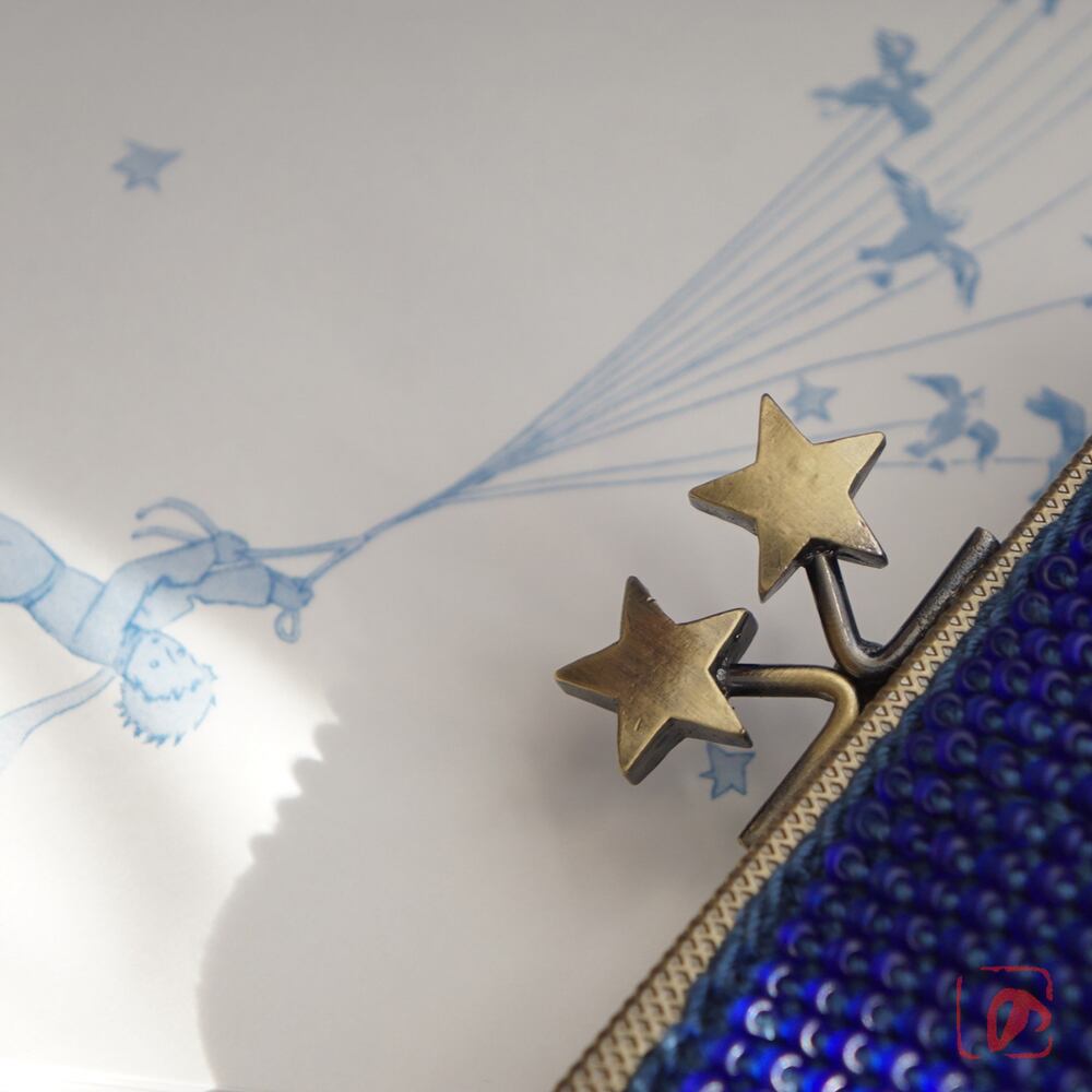 口金 : アンティークゴールド、星のつまみ、10.5cm、角型、両カン