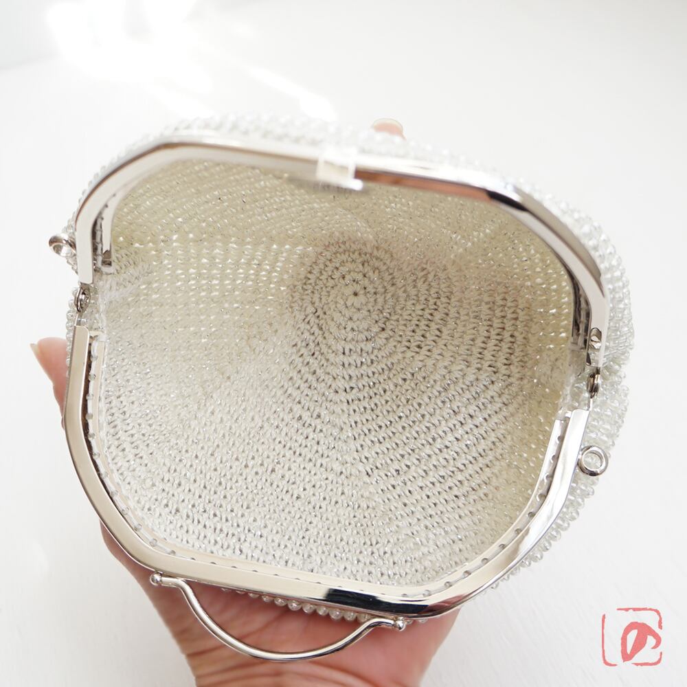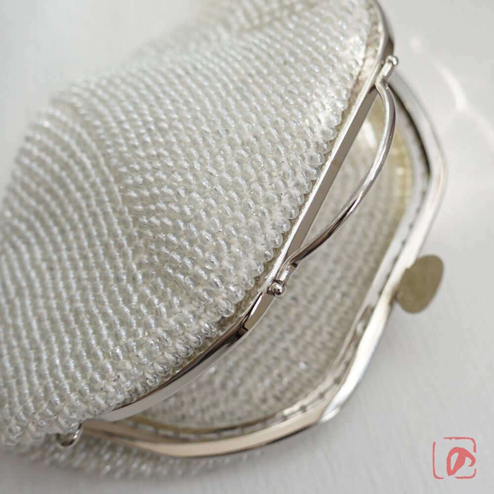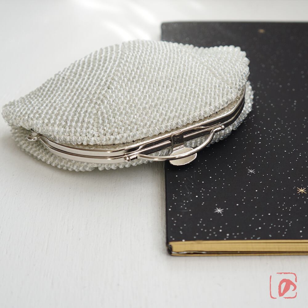 3mmのガラスビーズをひとつぶづつ、全面に編み込んでポーチに仕上げました。