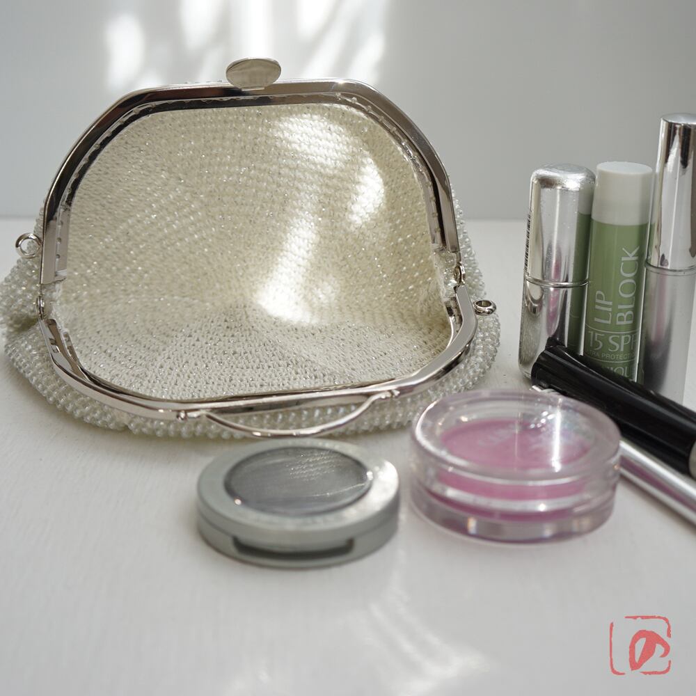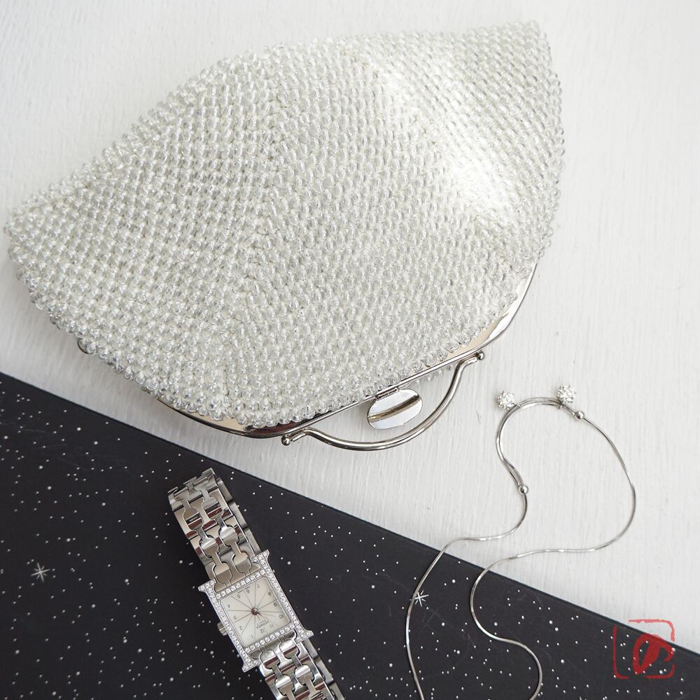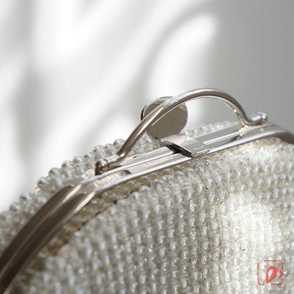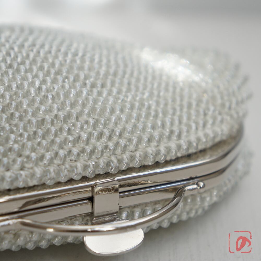 3mmのガラスビーズをひとつぶづつ、全面に編み込んでポーチに仕上げました。