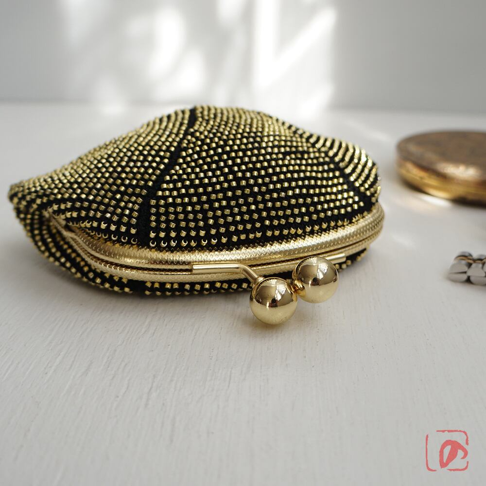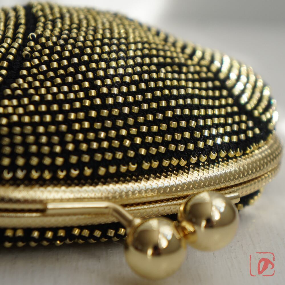 ばあば作♪シードビーズの大きめがま口(黒に金・2079)