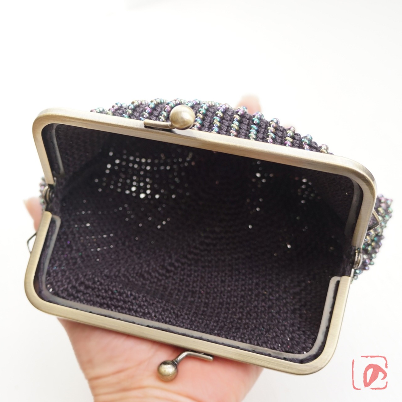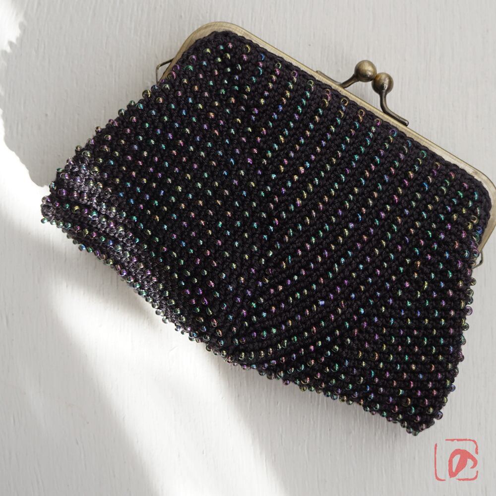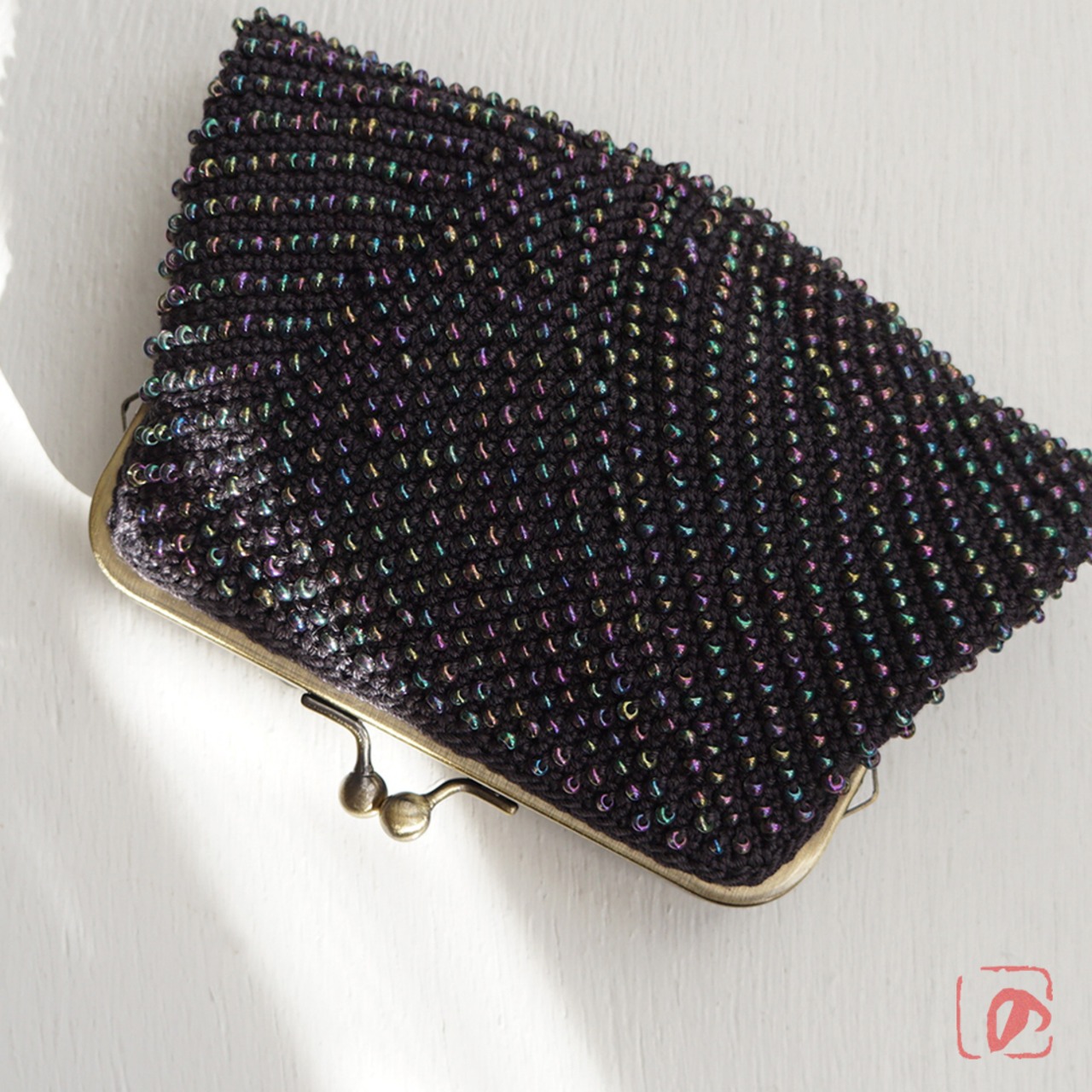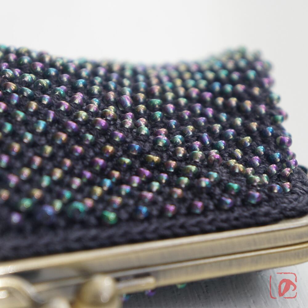 編みがま口×ビーズがま口のハイブリットつぶつぶビーズがま口です。