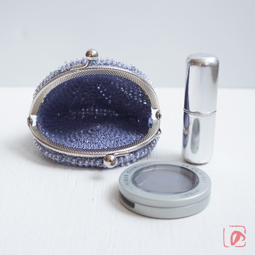 ばあば ♡ ガラスビーズのまんまるがま口(Tanzanite・2108)
