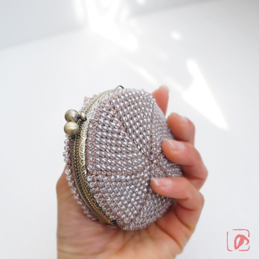ばあば ♡ ガラスビーズのまんまるがま口(café moka・2102)