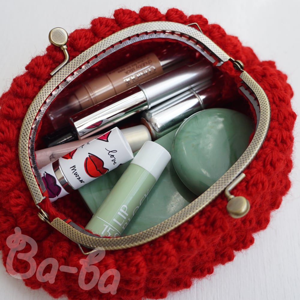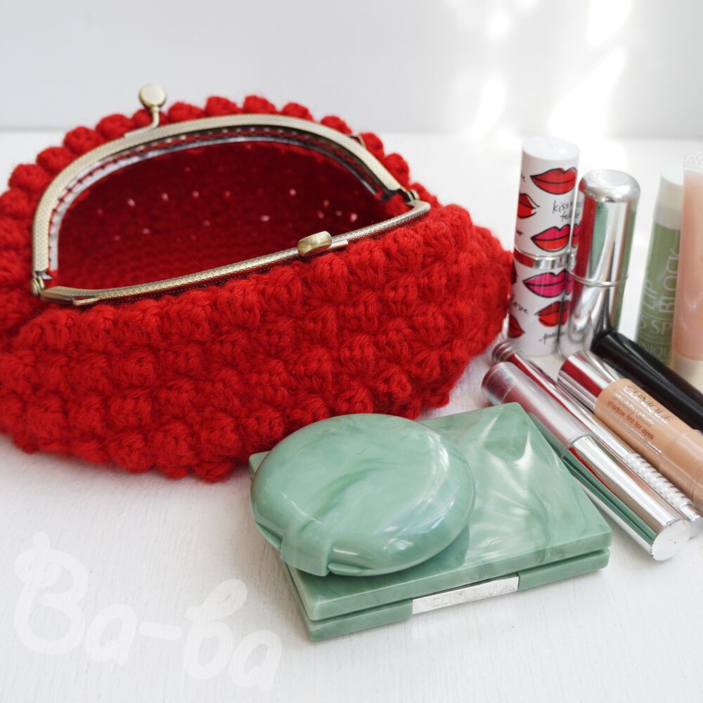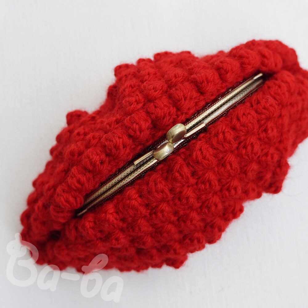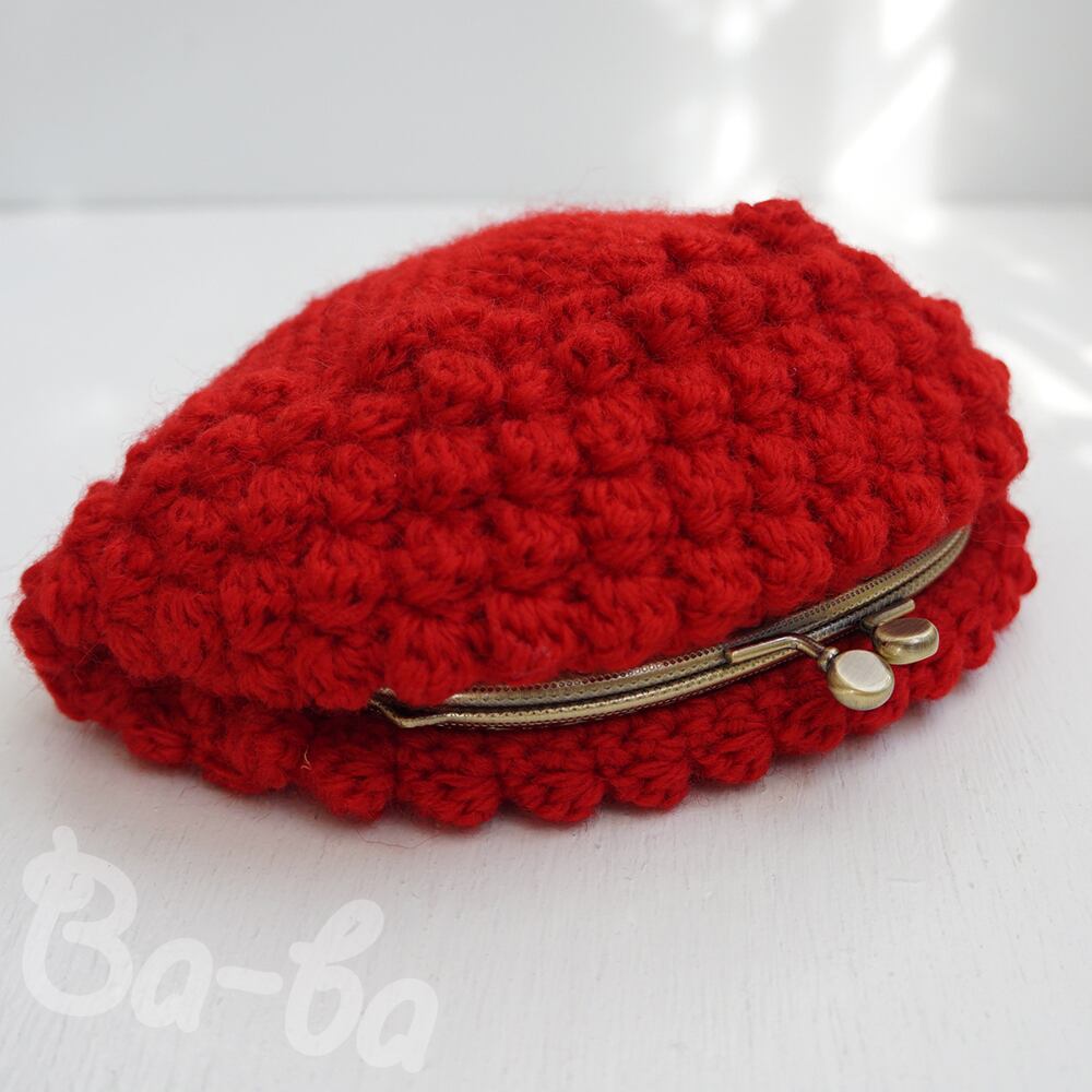 真っ赤な毛糸をバブルステッチで編み、がま口にしました。