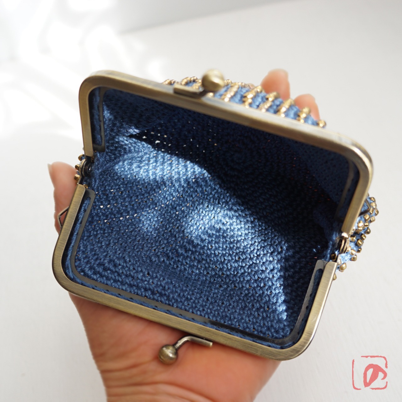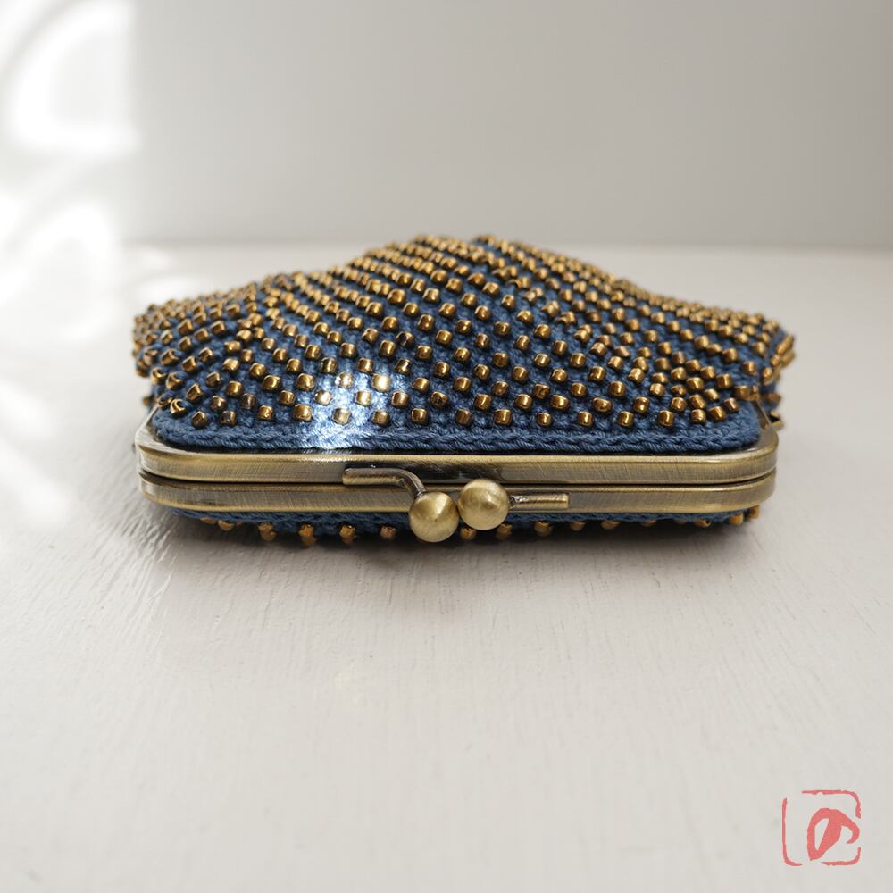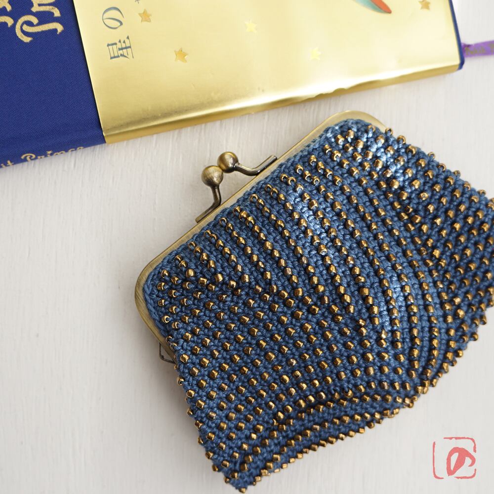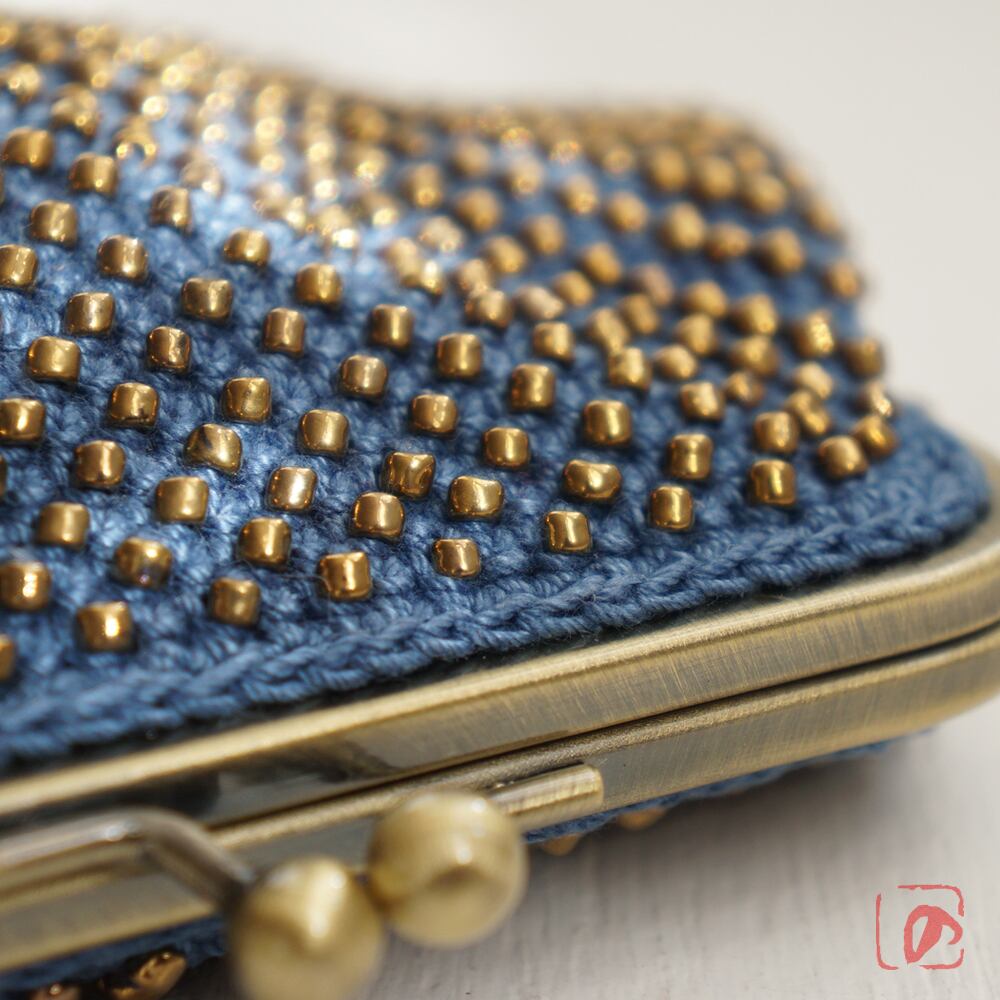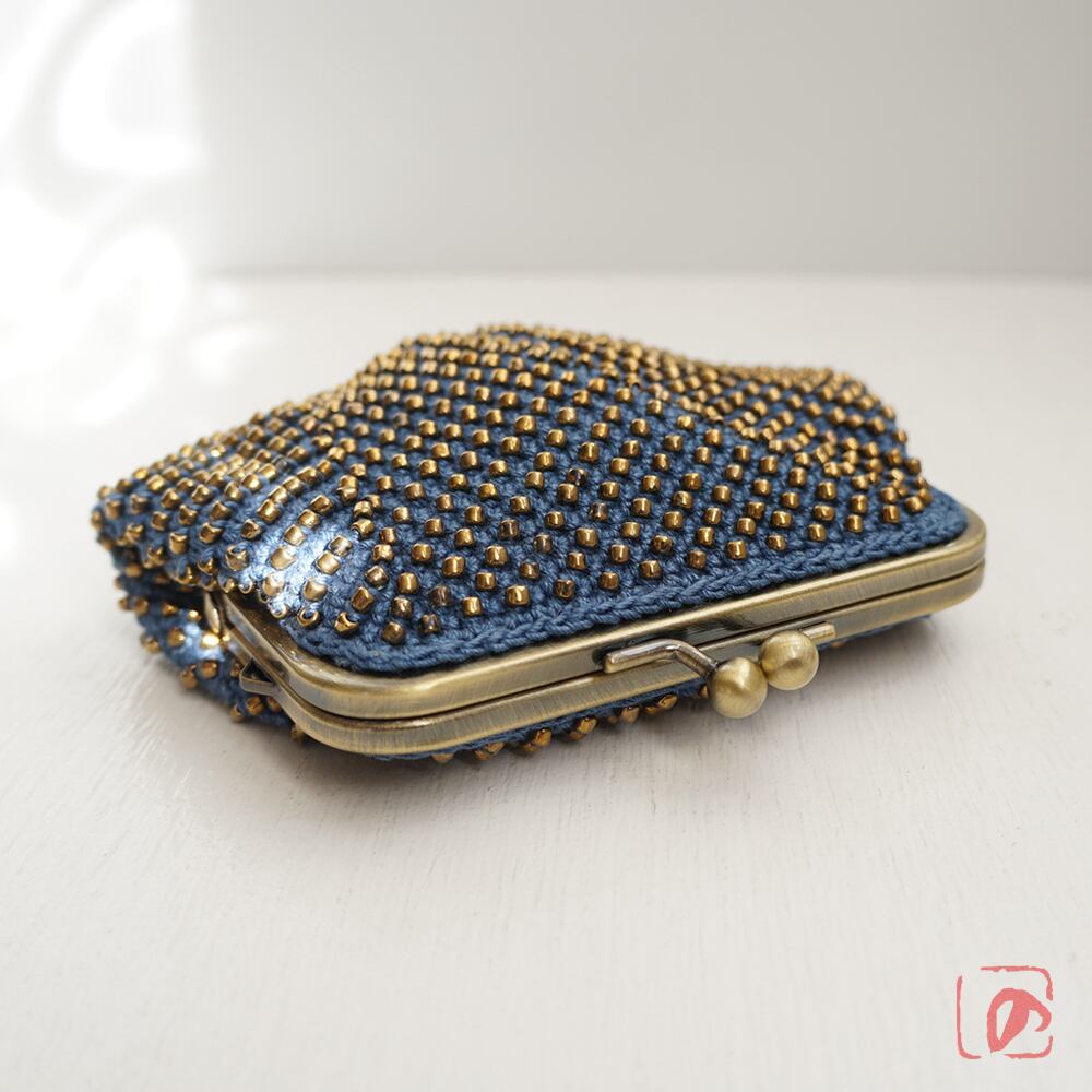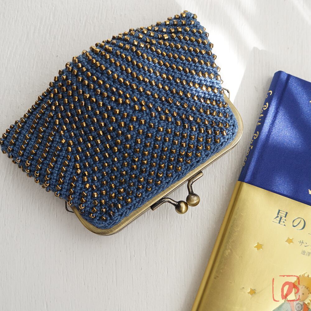 一目飛ばしにビーズを編み込んだ、つぶつぶ感がカワイイがま口。