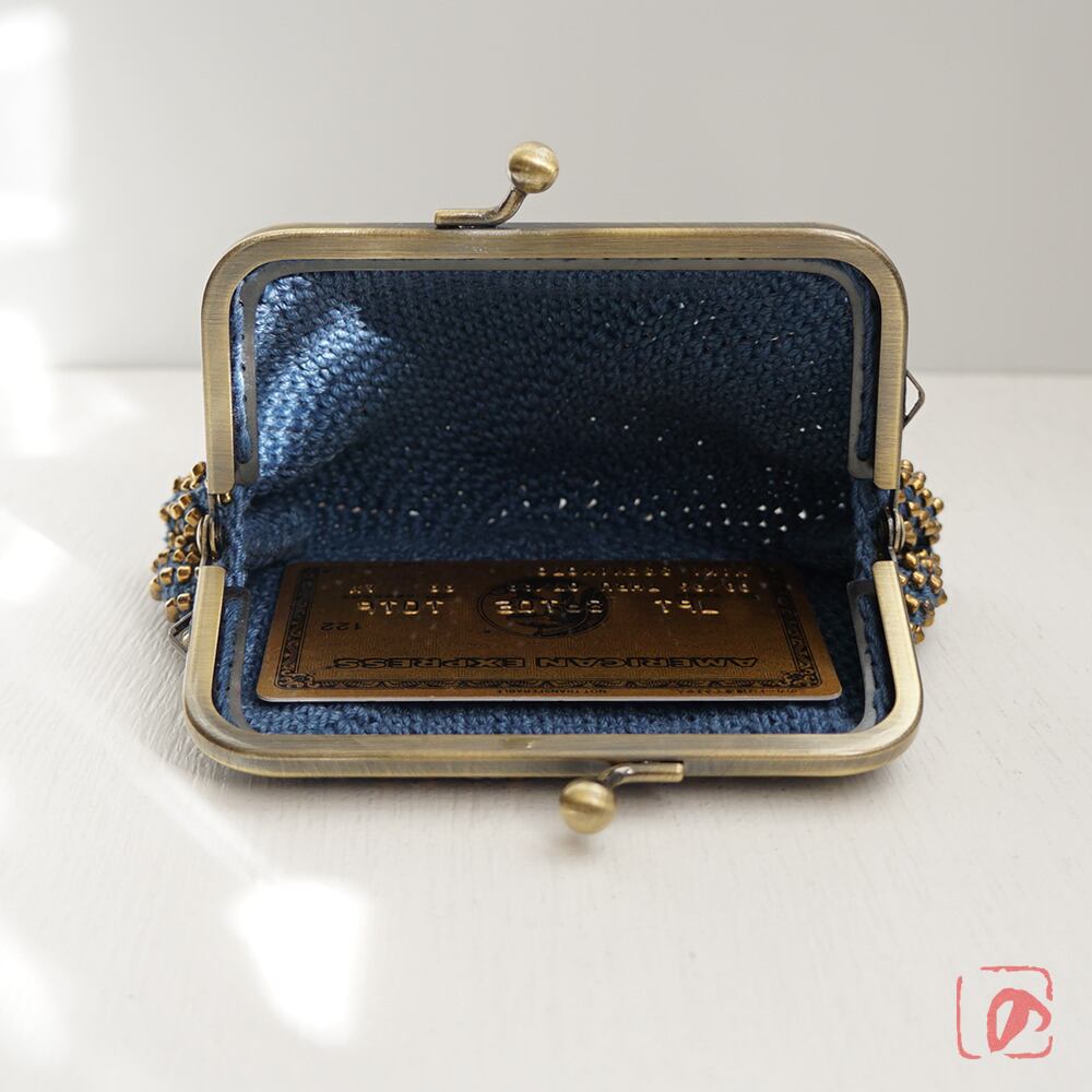 編みがま口×ビーズがま口のハイブリットつぶつぶビーズがま口です。